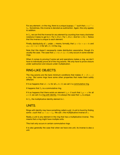 There is something incredible about mathematical intuition, the way a good analogy can make concepts click, and how stretching an analogy can lead to new understanding. A brief look at rings was my attempt to capture some of that intuition in a similar tradition to other visually-driven math texts.